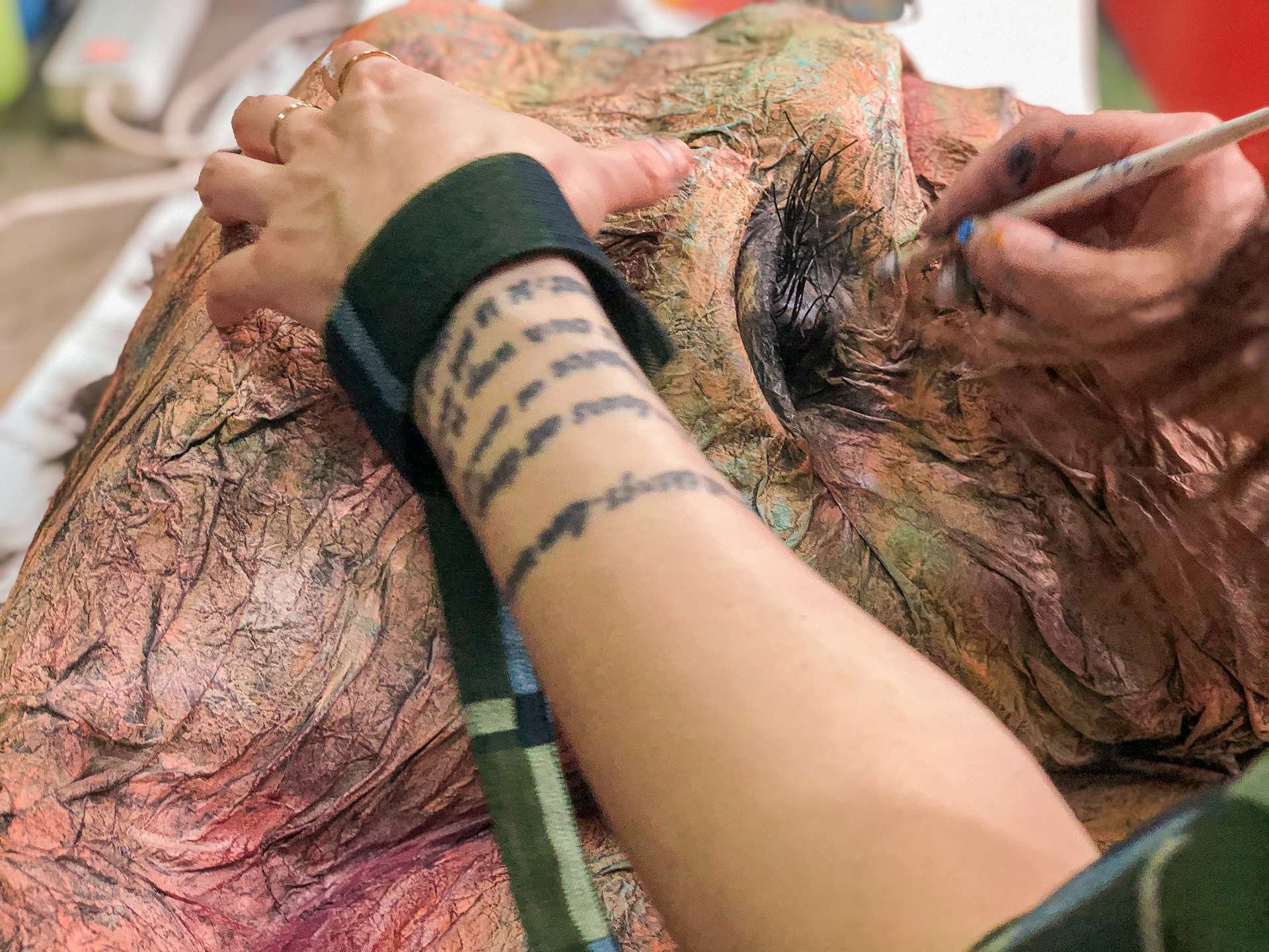 The installation makes full use of the plasticity of paper art and the gradation of color.