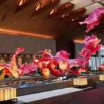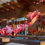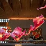 The installation is based on the theme of "waves", with spring-like peach color as the main tone.